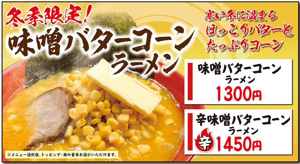 【新メニュー情報】(ラーメン道楽)冬メニュー・スタート!(12月2日)